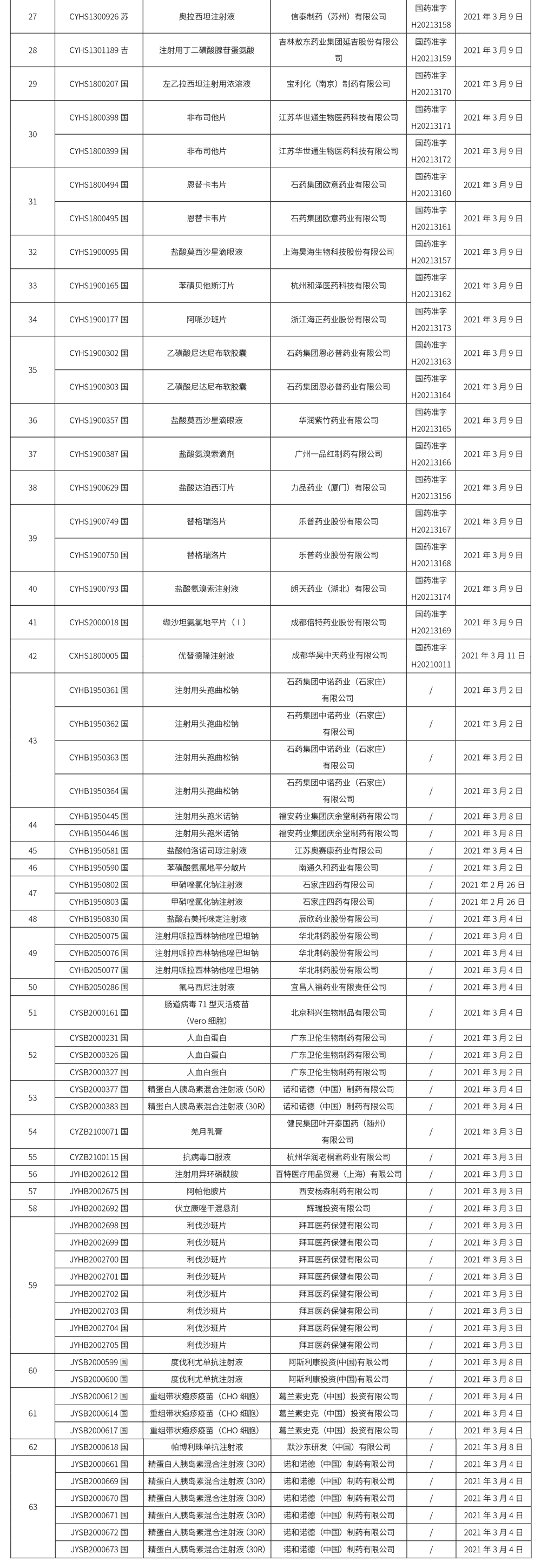 本周共計(jì)63個品種獲批取得藥品批準(zhǔn)證明文件,其中一致性評價(jià)品種14個,注射劑品種35個。