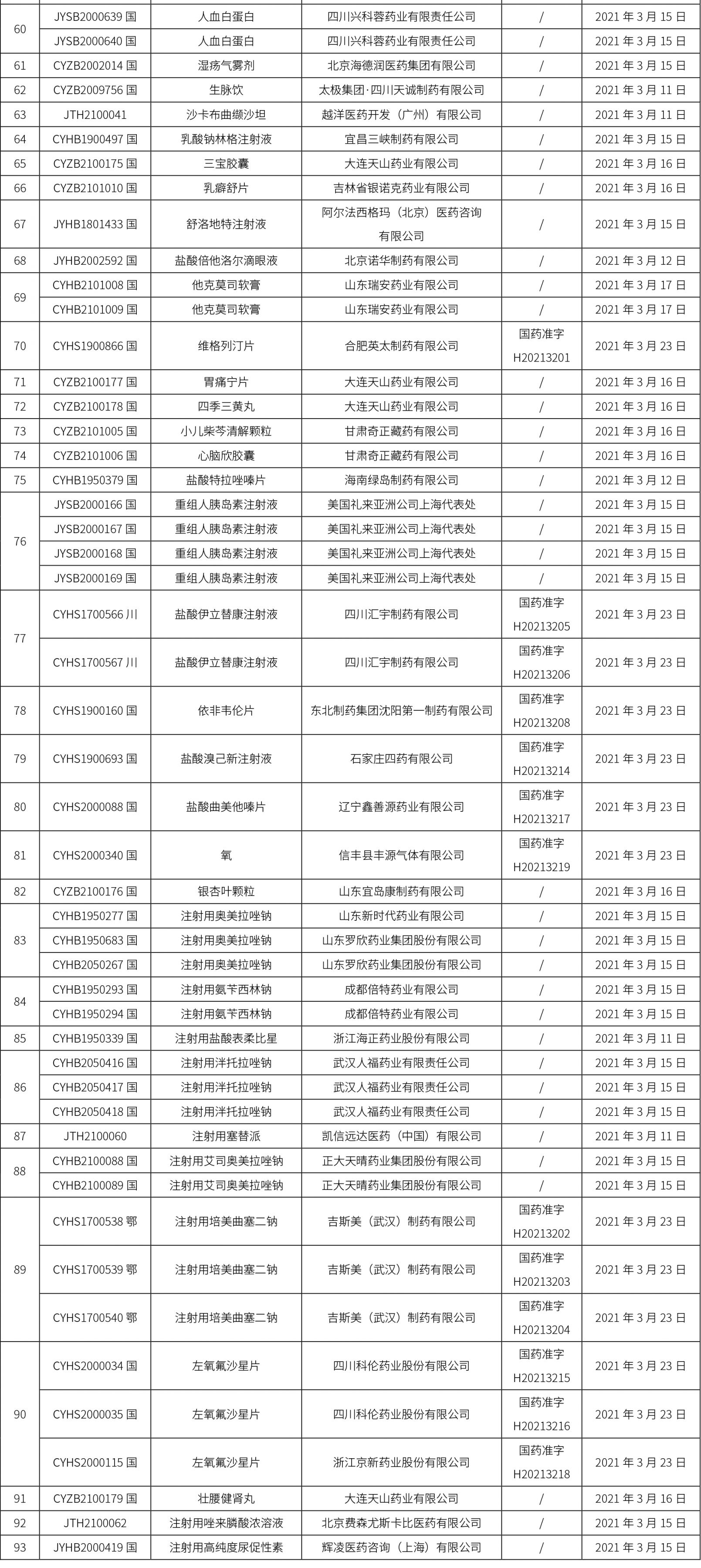 本周共計93個品種獲批取得藥品批準證明文件,其中一致性評價品種16個,注射劑品種9個。