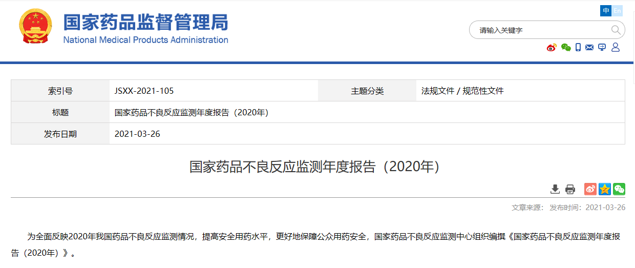 國家藥品不良反應(yīng)監(jiān)測年度報告(2020年)