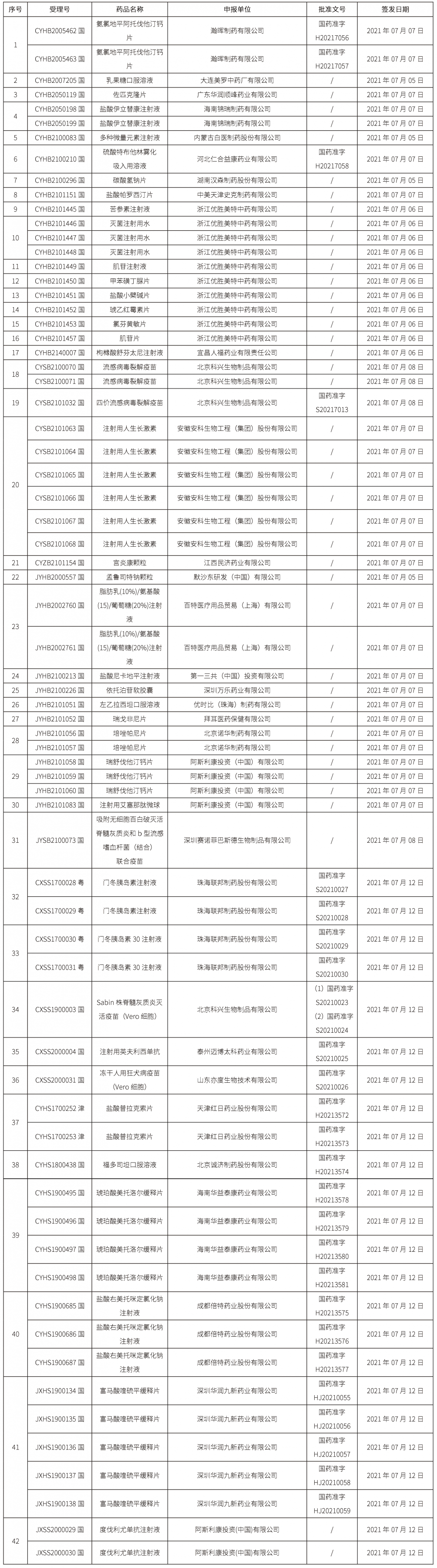 1. 本周共計42個品種取得藥品批準證明文件,其中一致性評價品種2個,注射劑品種15個。80個品種獲得特殊藥品批準證明文件。