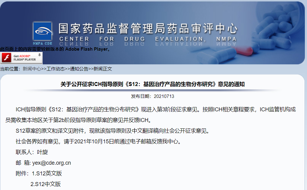 關(guān)于公開征求ICH指導原則《S12:基因治療產(chǎn)品的生物分布研究》意見的通知