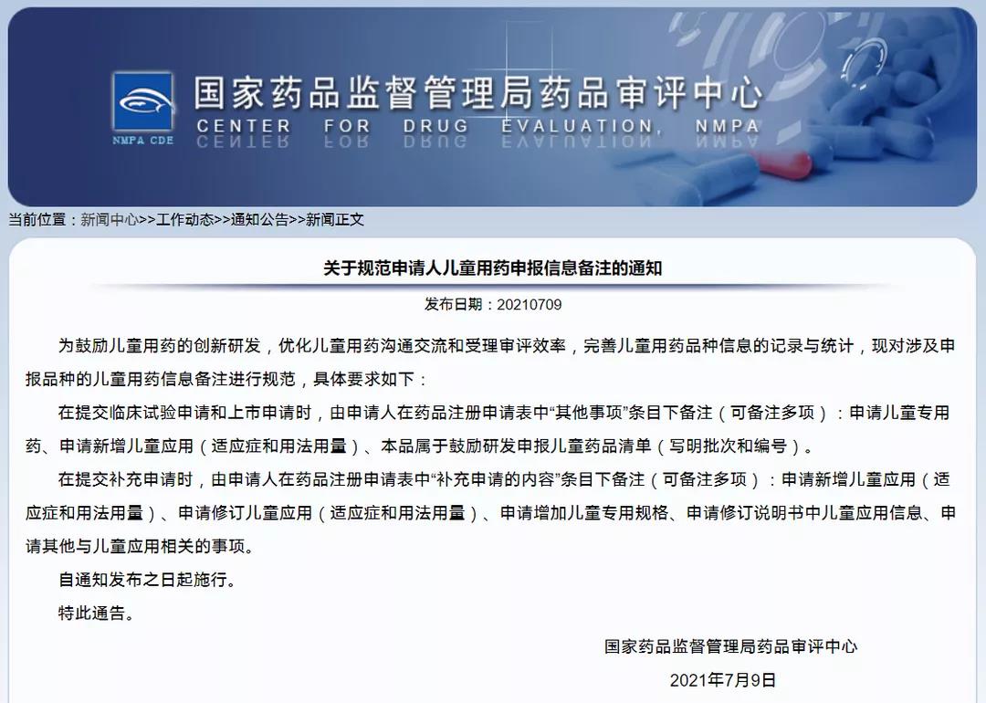 關(guān)于規(guī)范申請人兒童用藥申報信息備注的通知