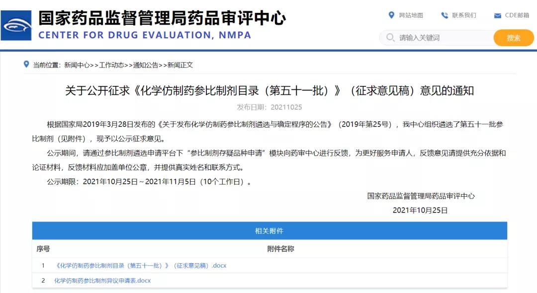 關(guān)于公開(kāi)征求《化學(xué)仿制藥參比制劑目錄(第五十一批)》(征求意見(jiàn)稿)意見(jiàn)的通知