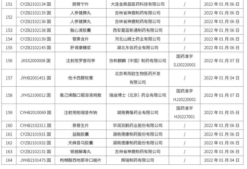 1. 本周共計164個品種獲批取得藥品批準(zhǔn)證明文件,其中一致性評價品種22個,包括注射劑品種11個。