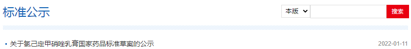 本周氯己定甲硝唑乳膏國家藥品標(biāo)準(zhǔn)草案的公示。