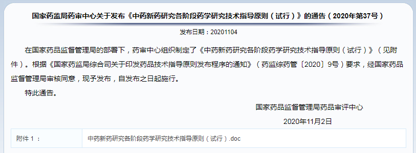 《中藥新藥研究各階段藥學研究技術(shù)指導(dǎo)原則(試行)》(2020年第37號)