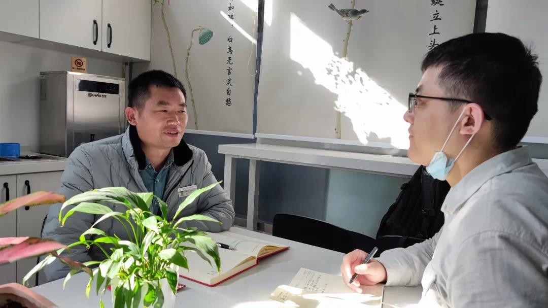 采訪就地過(guò)年的員工(趙凱帆/攝)