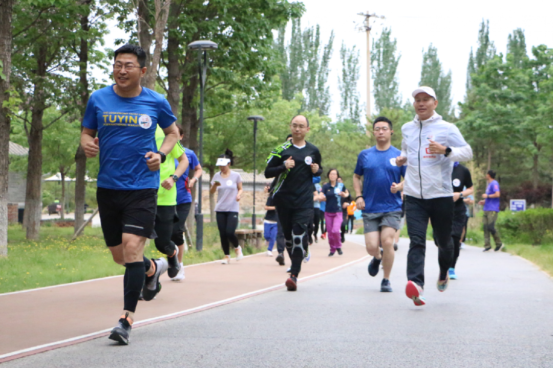 長長的賽道熄滅不了的是沖刺終點的熱情,沿途怡人的風(fēng)景留下的卻是背影和汗水,縱然身心疲憊,依然向前奔跑,也許是醫(yī)藥人長在骨子里的堅韌和執(zhí)著,也許是隊友陪伴激發(fā)了跑者們的熱情,身戴“醫(yī)藥天團(tuán)”貼紙的選手們,成為公園中一道靚麗的風(fēng)景線!