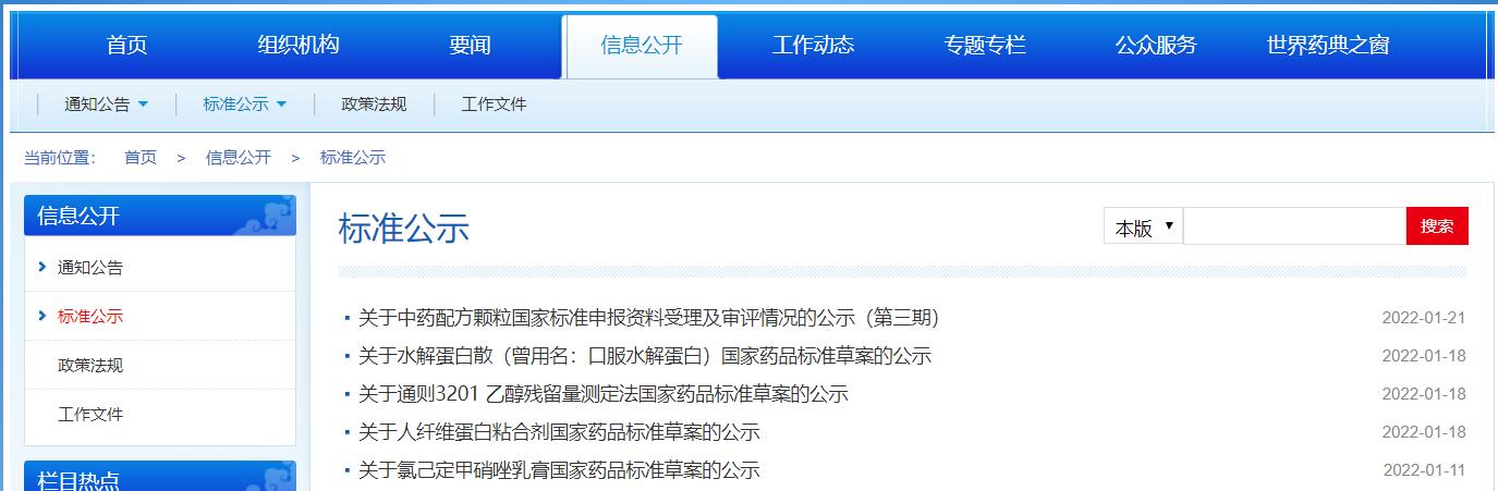 本周水解蛋白散(曾用名:口服水解蛋白)、通則3201乙醇殘留量測定法和人纖維蛋白粘合劑國家藥品標準草案公示。